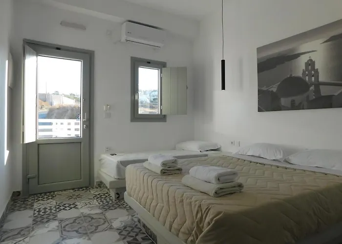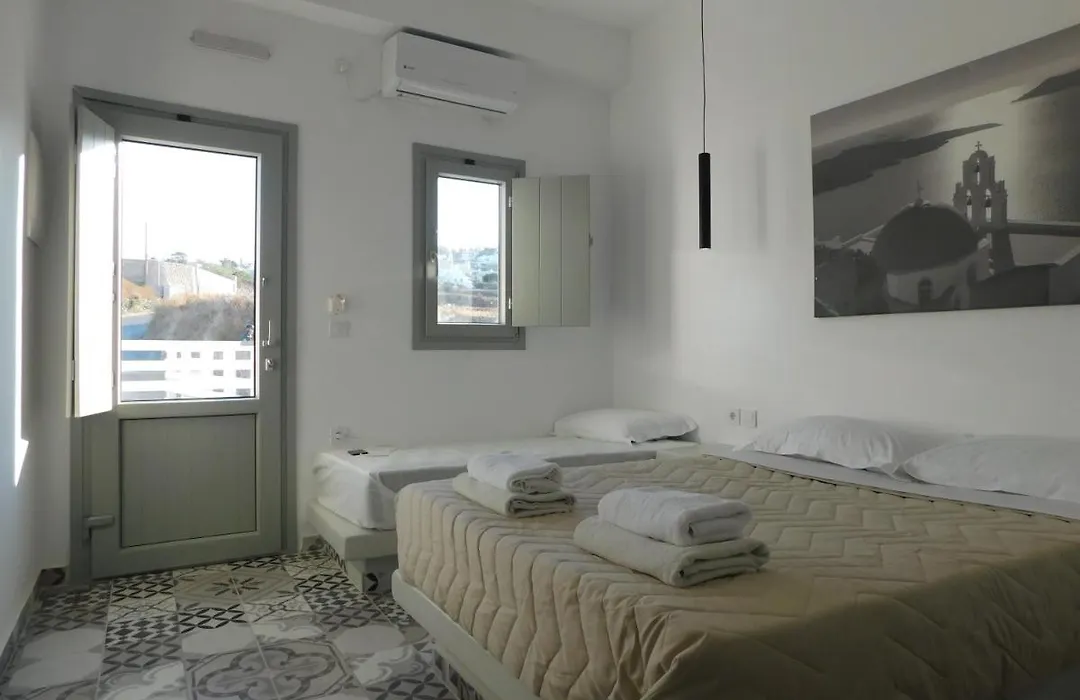 Το Fira Veronica Rooms Ημεροβίγλι έχει 10 δωμάτια και απέχει 25 λεπτά με τα ποδια από Τρεις καμπάνες των Φηρών.